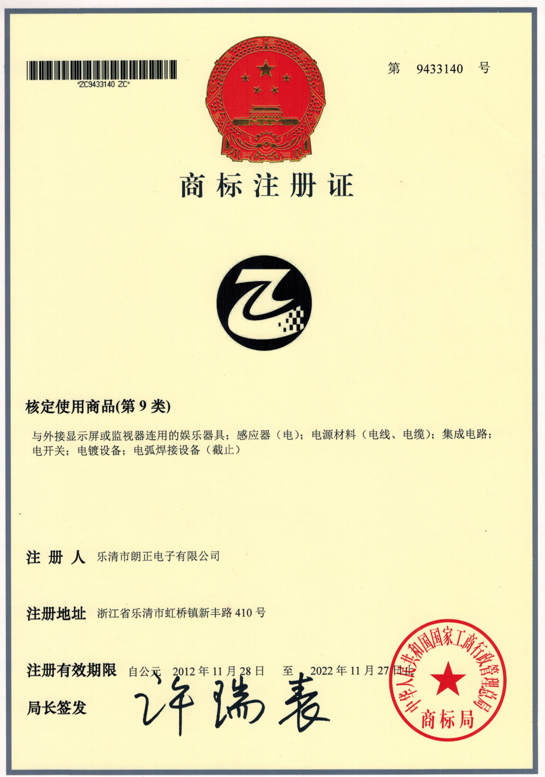 - Trademark Registration Certificate