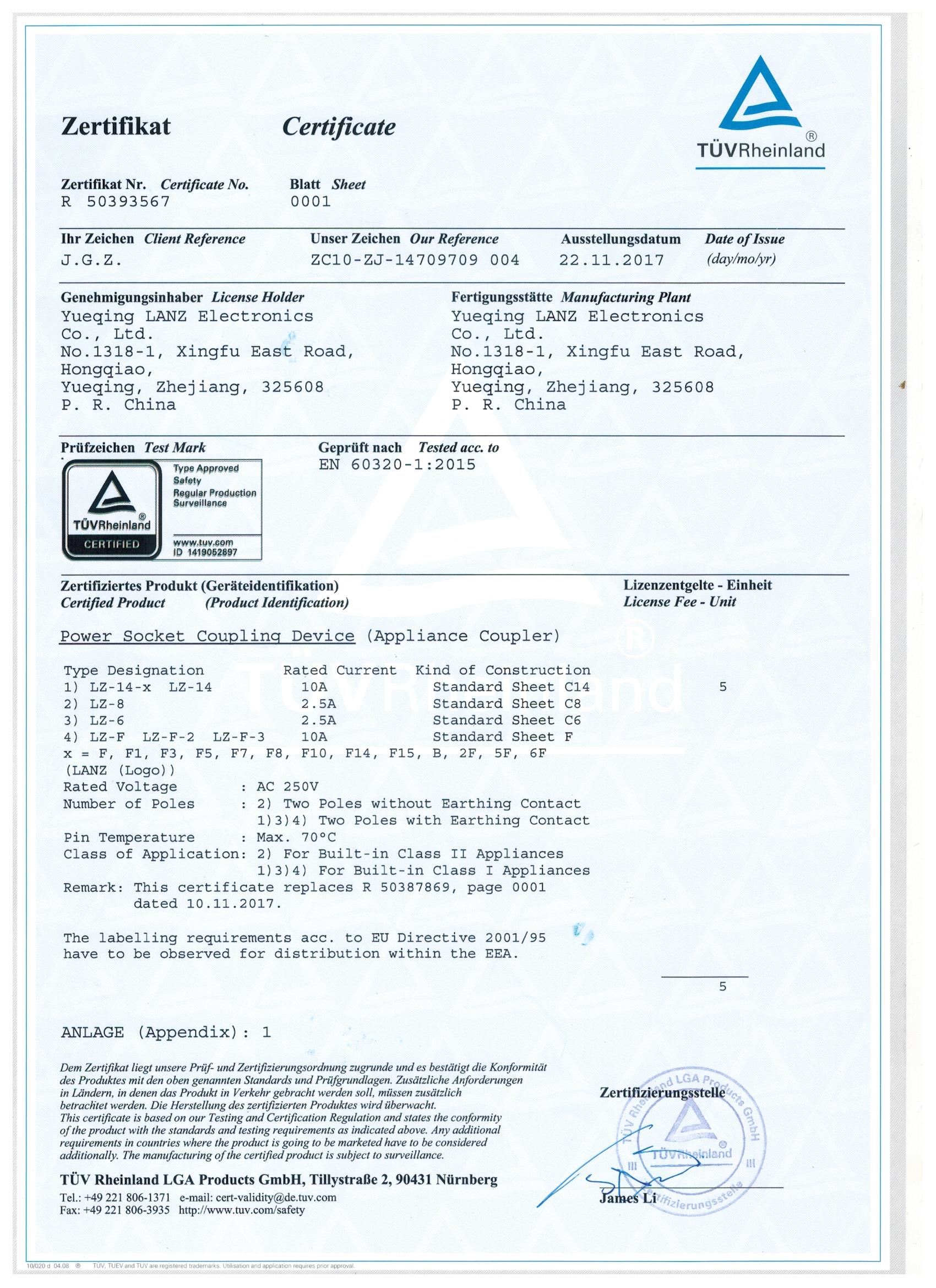 - LZ-8 LZ-20 LZ-14 UL certification